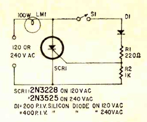 This circuit for the power grid was found in the June 1969 Radio Electronics magazine. The load is dependent on the SCR and the control is half-wave.