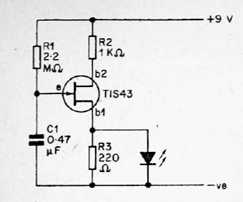 The frequency of this circuit depends on the capacitor. The unijunction transistor can be the 2N2646.
