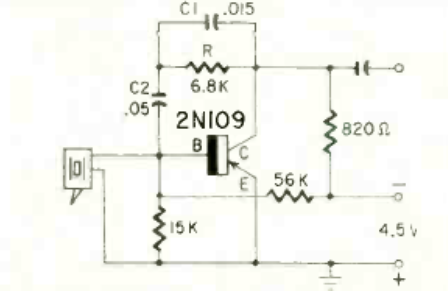 This preamplifier for record players with crystal capsules was found in Radio Electronics magazine from June 1959. The transistor is made of germanium common at the time.