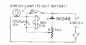 The frequency of this pulser depends on the capacitor and the characteristics of the relay. The circuit was found in Radio Electronics magazine from March 1960. The relay voltage must be that used in the power supply.