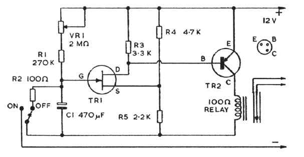 The maximum time interval of this circuit depends on C1. Larger values can be used to get closer to 1 hour. The circuit is from an old English documentation.
