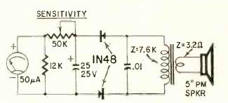 This simple circuit does not use active components and uses a small speaker as a microphone. The circuit was found in Radio Electronics magazine from January 1960.