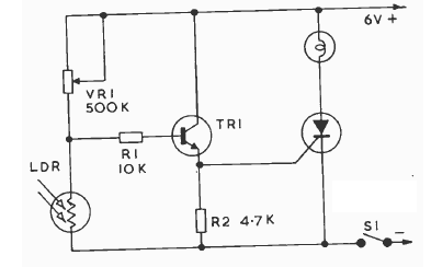 This circuit was obtained from old documentation, triggering when there is a power cut on the sensor. Sensitivity adjustment is done in VR1, and the transistor can be BC548.