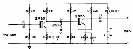 This circuit was found in an American publication from the 60's. Transistors are germanium types of the time. The frequency is given by C3 and C4.