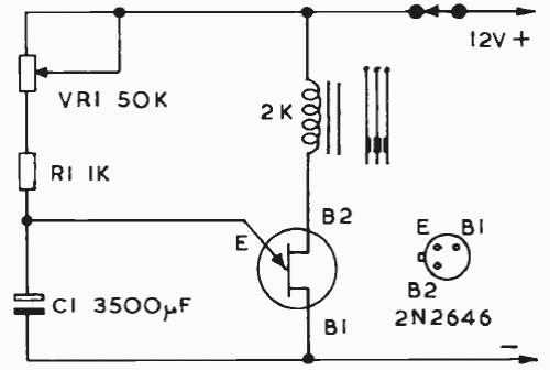 Found in old documentation, this timer uses a sensitive relay and a 2N2646. The time is given by C1. It can be increased if VR1 has values up to 1 M ohms.