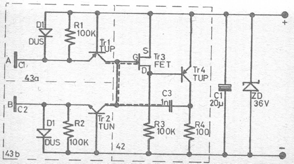 We found this circuit in an old English documentation. Transistors support modern equivalents.