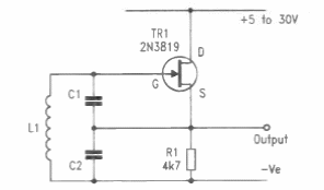 This ultra-simple circuit has the frequency determined by the LC network. Any general purpose JFET can be used.
