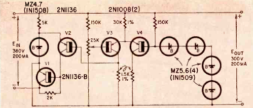 This high-voltage solid-state voltage regulator was featured in the January 1961 Radio Electronics magazine. The components are contemporary.