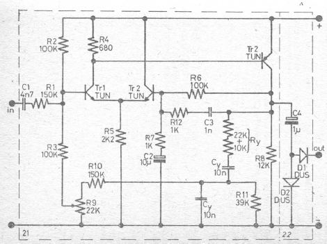 We found this circuit in an English documentation from the 80's. The circuit can make use of modern general-purpose transistors.