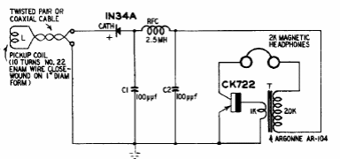 Found in documentation from the 1960s, this circuit oscillates under the action of a transmitter signal, serving to monitor telegraph transmissions. The phone is of high impedance.