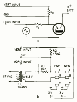 This circuit has the function of observing the characteristic curve of a transistor on the oscilloscope. The circuit was found in the May 1953 Radio Electronics magazine.