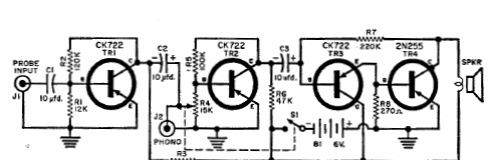 Using old germanium transistors like the CK722, this circuit has good gain. We found it in a publication from the 50s.
