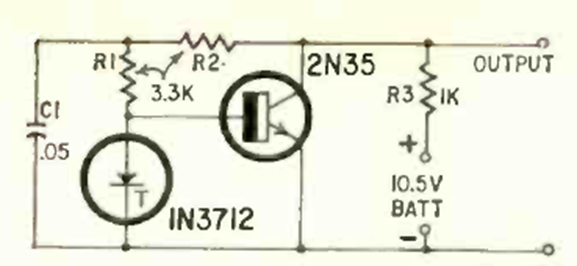 This circuit is from a Radio Electronics from February 1965. The transistor is general-purpose germanium at the time. The time is given by the resistors and the capacitor.