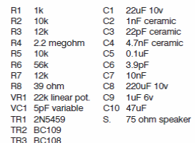 We found this receiver in an old English documentation. The JFET is commonly used and the bipolars can be the BC548s. No information was given about the coils.