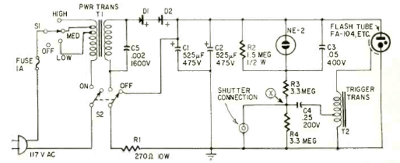 This is a very common circuit in the days of xenon flashes for cameras. This is from a Radio Electronics magazine from November 1965. It uses an SCR and has manual triggering.