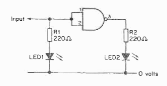 In the figure we have a simple logic level indicator for TTL circuits or powered by 5 V.