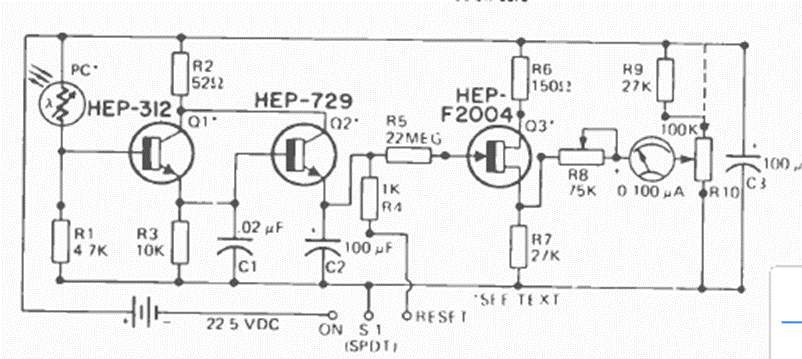 Under this name, Radioelectronics magazine published in the January 1974 issue a light exposure meter for photographers. The circuit used general-purpose transistors and a FET, with an LDR sensor.