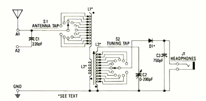 This circuit was published in a recent magazine as a past project. It is a crystal radio from October 1986 Radio Electronics magazine. The article detailed the assembly.