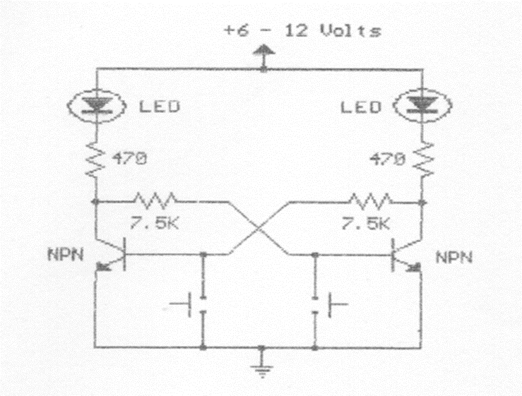 This circuit is from a 90's documentation. The circuit is simple, as it uses only two transistors, and the control is done by pressure switches. The indication is done by LEDs.