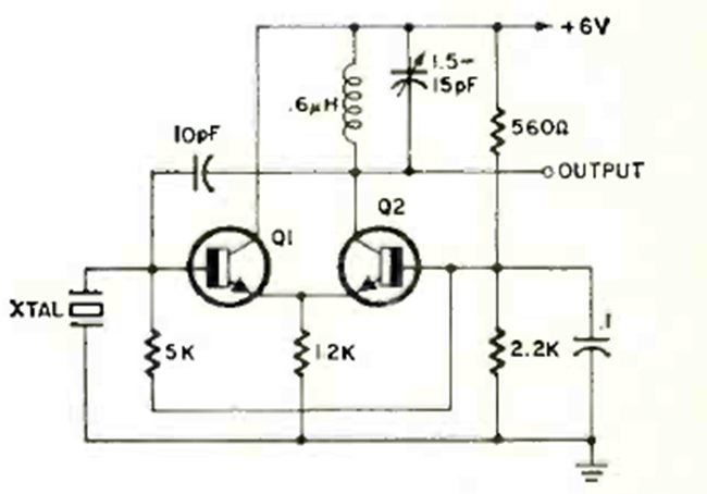 This oscillator for the fifth overtone of a crystal was found in a Radio Electronics magazine from May 1970. Transistors are RF types, and the transistor determines the maximum frequency achieved.