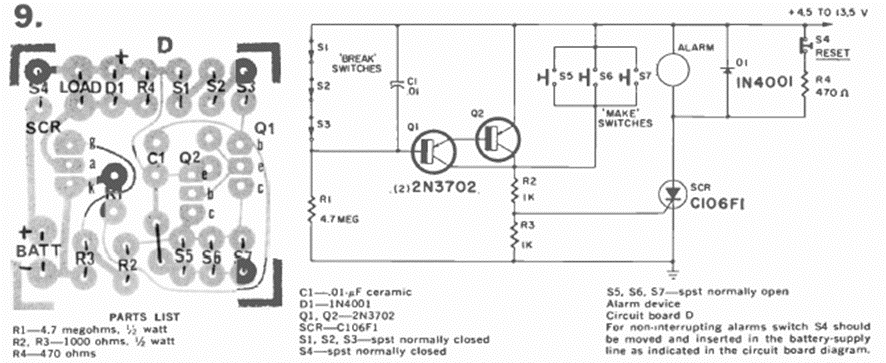 This circuit, with printed circuit board included, is from a Radio Electronics magazine from July 1971. The SCR can be any equivalent of the 106 series.