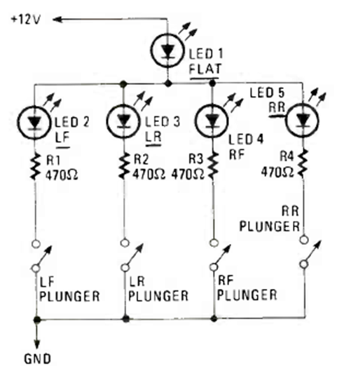 Recommended for automotive use, this circuit is used to indicate the activation of functions. The circuit is from a Radio Electronics magazine from April 1982.