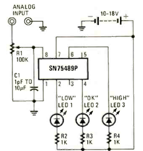 Using the Texas Instruments SN75489P this circuit was found in June 1978 Radio Electronics magazine. The power supply is from 10 to 18 V.