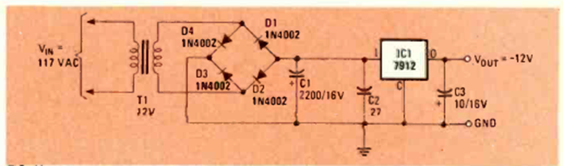 This power supply uses a single-winding transformer. We found it in July 1984 Radio Electronics magazine. The integrated circuit must be equipped with a heat sink.