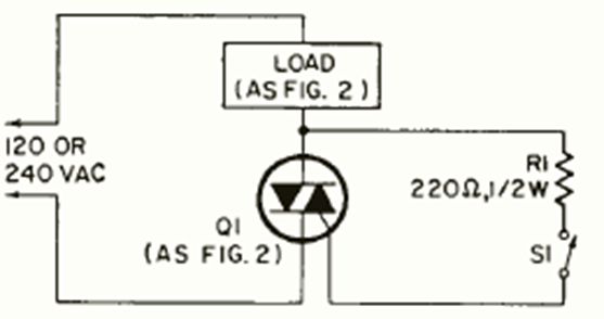 This simple triac trigger switch with low current switch was found in the June 1970 Radio Electronics magazine. The triac is acoording the controlled.load.
