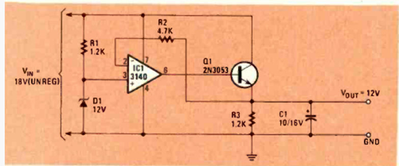 This circuit is from a Radio Electronics magazine from July 1984. The transistor determines the maximum current, and the zener diode the output voltage. The transistor must be equipped with a heat sink.