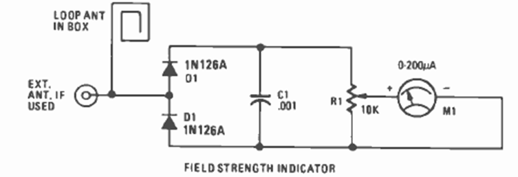 This simple analog instrument circuit was found in the October 1977 issue of Radio Electronics magazine. The diodes are germanium for greater sensitivity.