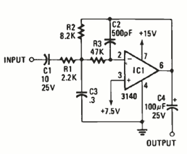 We found this circuit with the CA3140 in October 1986 Radio Electronics magazine. The circuit can be modified to operate at other frequencies.