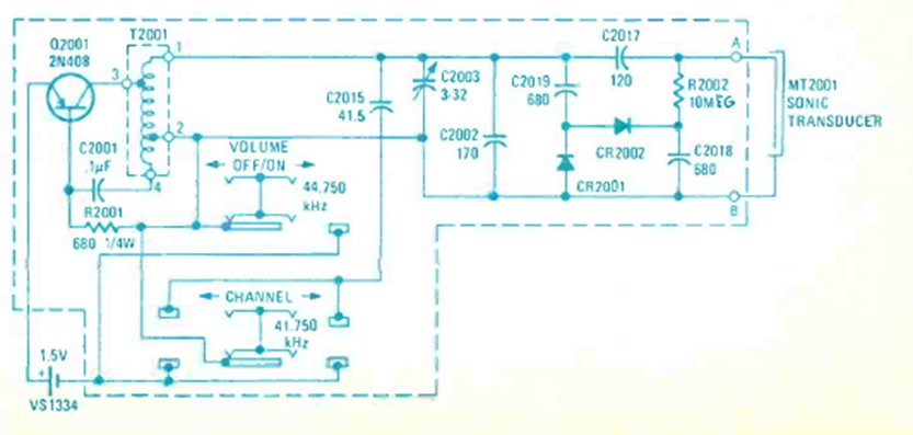 This circuit from a Radio Electronics from December 1974 was used in color televisions of the time. It serves as a reference for restoration work. The circuit is of the ultrasonic type.