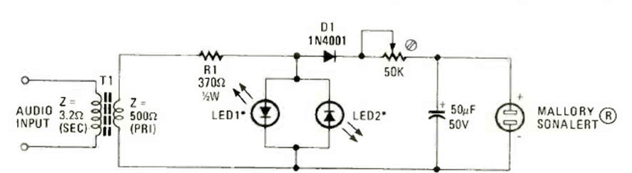 This simple circuit, connected to the speaker output of an off-station AM radio, detects the crackling sounds caused by lightning strikes. The circuit was suggested by an article in the March 1980 issue of Radio Electronics magazine.