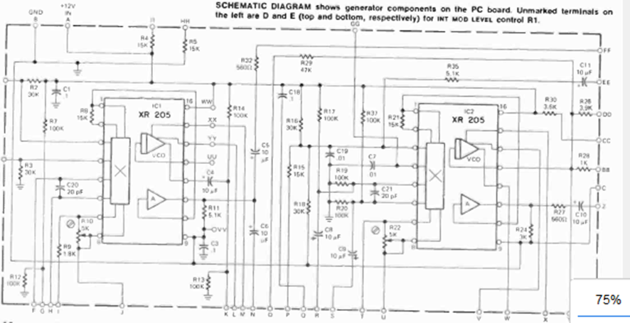 This circuit is from the July 1973 Radio Electronics magazine. The circuit is based on the XR-205, which was popular at the time for this type of application. The circuit generates from 100 KHz to 150 kHz.