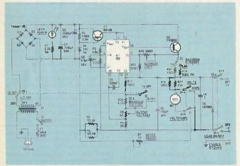 This variable 1 A power supply with voltages up to 30 V was found in an article in June 1986 Radio Electronics magazine. The 723 IC is well known to magazine readers of the time and even today.