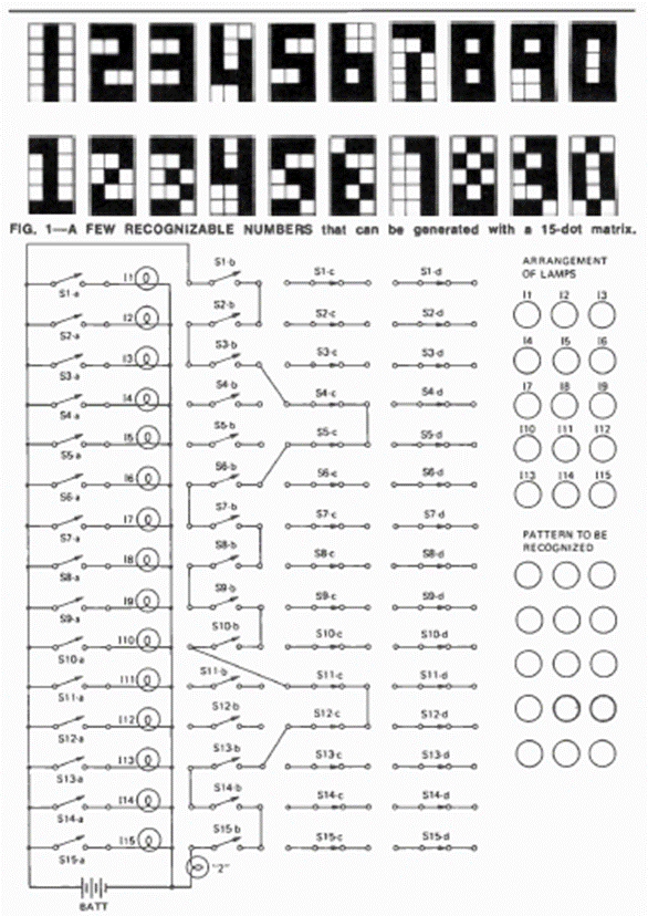 This circuit simulates an 18-point digital display using light bulbs, but can be adapted to use LEDs. The teaching circuit is from a Radio Electronics from June 1975.