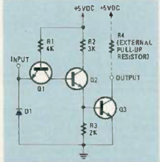 This is a discrete equivalent version of an open collector TTL gate. What we have is an inverter circuit with 3 common transistors.
