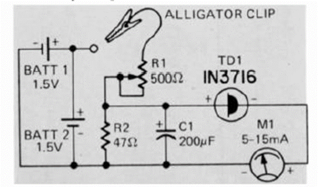 The purpose of this circuit, which we found in an August 1973 Radio Electronics issue, is to determine the characteristics of a tunnel diode.