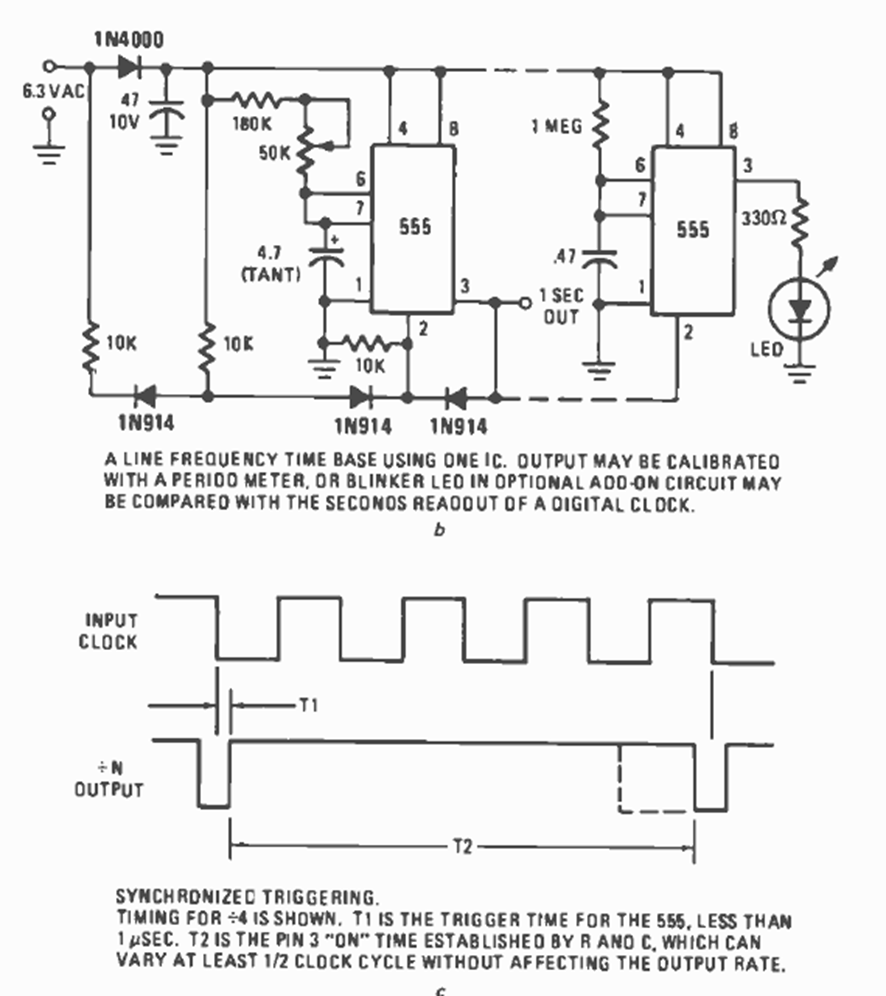 This mains-synchronized circuit produces a simple 1 pulse per second. The circuit is from a Radio Electronics magazine from May 1977.