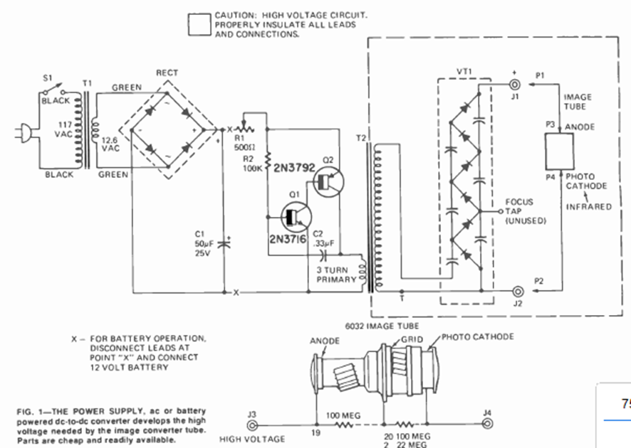 This circuit is from a Radio Electronics magazine from August 1974. It used one of the first photomultiplier tubes that was to be powered by high voltage. The power came from the mains.