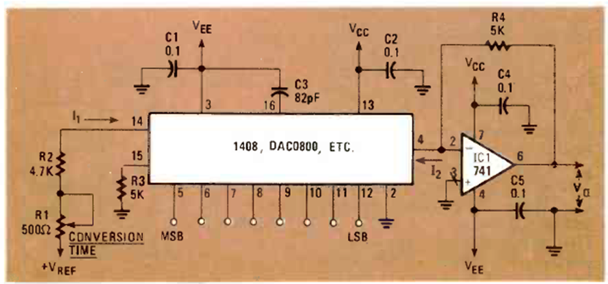 The reference voltage for this circuit can be selected digitally. The circuit is from Radio Electronics dated February 1981. The 741 must be powered by a symmetrical source.