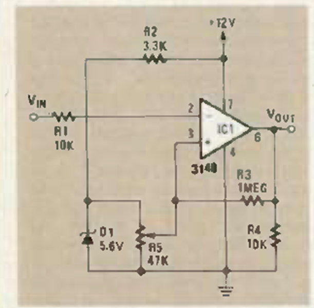 We found it in the Radio Electronics magazine of June 1986. The reference voltage is adjusted in the zener. The power supply must be greater than the reference range.