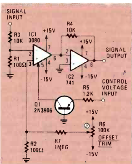 This circuit is from Radio Electronics from July 1983. The operational amplifier is of the transconductance type, and the power supply must be symmetrical at 15 V.