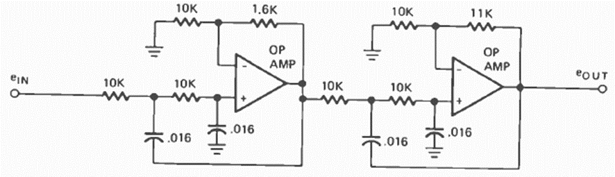 This circuit with 24 dB per octave attenuation was found in the November 1973 Radio Electronics magazine. The components are for 1 kHz but can be recalculated for other frequencies.