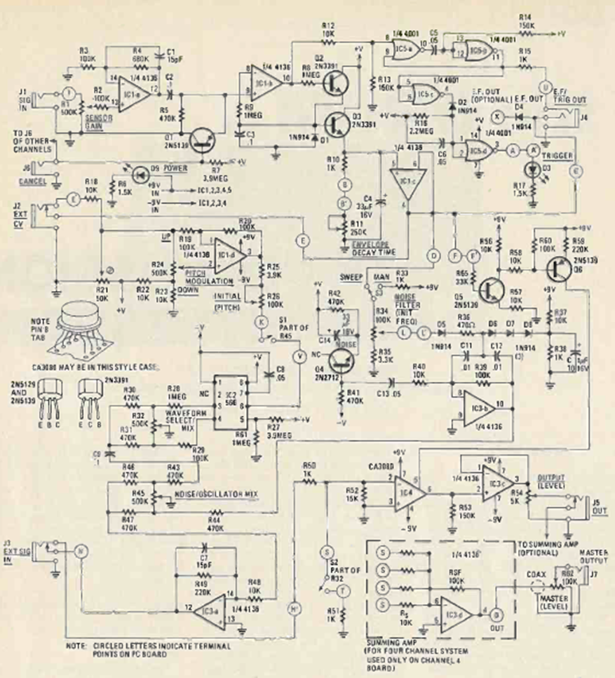 This sophisticated drum sound synthesizer was featured in the May 1980 issue of Radio Electronics magazine. The circuit is based on common integrated circuits and its output must be connected to an amplifier.