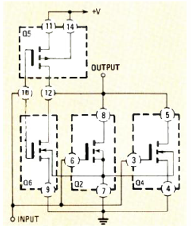 The figure shows how to use the 4 transistors of the IC 4007 as a current drain. The circuit was suggested by the magazine Radio Electronics of August 1986.