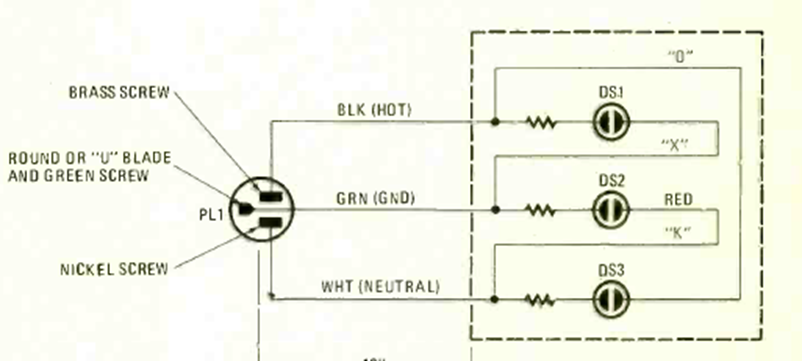 We found this simple outlet tester using neon lamps in a Radio Electronics magazine from August 1979. The circuit was originally for 117 V networks, but it can be used in others depending on the resistors that can be between 220k and 470k.