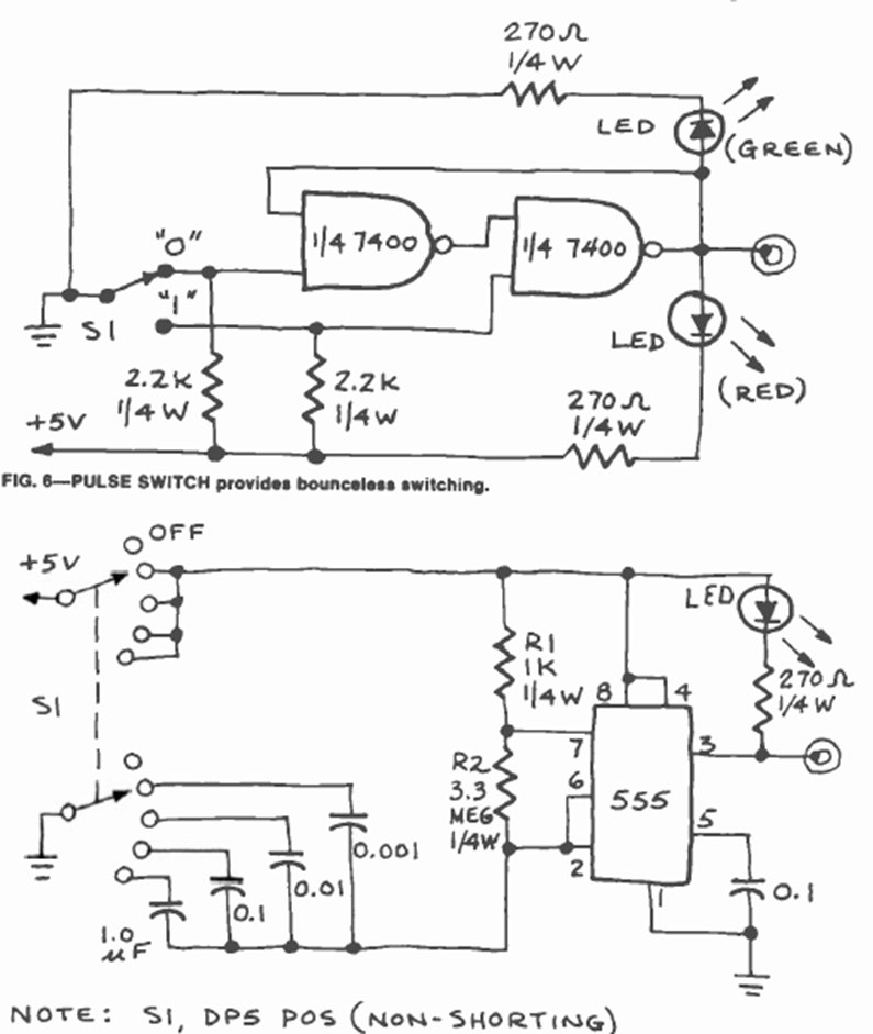 Using the 555 and 7400 this circuit was found in the September 1977 Radio Electronics magazine. The power supply must be made with a voltage of 5 V.