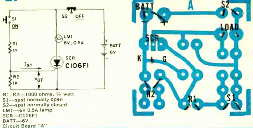 This circuit, with printed circuit board, is from an article in Radio Electronics magazine from May 1971. The circuit uses the C106 which was already a common component at the time.